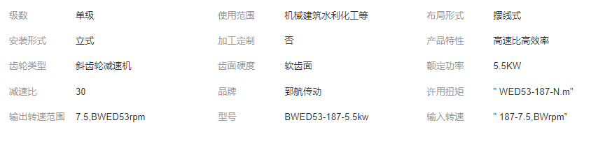 本网页所展示的有关【BWED53-187-5.5kw球墨 齿轮减速机 高速比高效率 斜齿 郅航传动_液压减速机_河南省郅航传动设备有限公司】的信息/图片/参数等由全球零部件网的会员【河南省郅航传动设备有限公司】提供,由全球零部件网会员【河南省郅航传动设备有限公司】自行对信息/图片/参数等的真实性、准确性和合法性负责,本平台(本网站)仅提供展示服务,请谨慎交易,因交易而产生的法律关系及法律纠纷由您自行协商解决,本平台(本网站)对此不承担任何责任。您在本网页可以浏览【BWED53-187-5.5kw球墨 齿轮减速机 高速比高效率 斜齿 郅航传动_液压减速机_河南省郅航传动设备有限公司】有关的信息/图片/价格等及提供【BWED53-187-5.5kw球墨 齿轮减速机 高速比高效率 斜齿 郅航传动_液压减速机_河南省郅航传动设备有限公司】的商家公司简介、江南(中国)等信息。