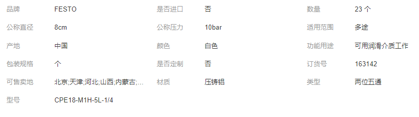 本网页所展示的有关【FESTO 费斯托 163142 电磁阀 CPE18-M1H-5L-1/4 原装现货_电磁阀_福建锜晟智能科技有限公司】的信息/图片/参数等由全球零部件网的会员【福建锜晟智能科技有限公司】提供,由全球零部件网会员【福建锜晟智能科技有限公司】自行对信息/图片/参数等的真实性、准确性和合法性负责,本平台(本网站)仅提供展示服务,请谨慎交易,因交易而产生的法律关系及法律纠纷由您自行协商解决,本平台(本网站)对此不承担任何责任。您在本网页可以浏览【FESTO 费斯托 163142 电磁阀 CPE18-M1H-5L-1/4 原装现货_电磁阀_福建锜晟智能科技有限公司】有关的信息/图片/价格等及提供【FESTO 费斯托 163142 电磁阀 CPE18-M1H-5L-1/4 原装现货_电磁阀_福建锜晟智能科技有限公司】的商家公司简介、江南(中国)等信息。