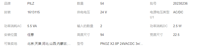 电气数据供电电压 (V) 24 V电源电压类型U1 AC/DC功率消耗AC 5.5 VA功率消耗DC 2.5 W