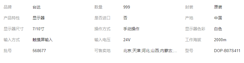 本网页所展示的有关【原装DELTA台达 7寸触摸屏 DOP-B07S411 全国包邮_电子行业_厦门上盈电气有限公司】的信息/图片/参数等由全球零部件网的会员【厦门上盈电气有限公司】提供,由全球零部件网会员【厦门上盈电气有限公司】自行对信息/图片/参数等的真实性、准确性和合法性负责,本平台(本网站)仅提供展示服务,请谨慎交易,因交易而产生的法律关系及法律纠纷由您自行协商解决,本平台(本网站)对此不承担任何责任。您在本网页可以浏览【原装DELTA台达 7寸触摸屏 DOP-B07S411 全国包邮_电子行业_厦门上盈电气有限公司】有关的信息/图片/价格等及提供【原装DELTA台达 7寸触摸屏 DOP-B07S411 全国包邮_电子行业_厦门上盈电气有限公司】的商家公司简介、江南(中国)等信息。