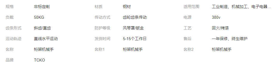 本网页所展示的有关【数控龙门桁架机械手 上下料机械臂 齿轮齿条工作台_电机_东莞市拓谷自动化科技有限公司】的信息/图片/参数等由全球零部件网的会员【东莞市拓谷自动化科技有限公司】提供,由全球零部件网会员【东莞市拓谷自动化科技有限公司】自行对信息/图片/参数等的真实性、准确性和合法性负责,本平台(本网站)仅提供展示服务,请谨慎交易,因交易而产生的法律关系及法律纠纷由您自行协商解决,本平台(本网站)对此不承担任何责任。您在本网页可以浏览【数控龙门桁架机械手 上下料机械臂 齿轮齿条工作台_电机_东莞市拓谷自动化科技有限公司】有关的信息/图片/价格等及提供【数控龙门桁架机械手 上下料机械臂 齿轮齿条工作台_电机_东莞市拓谷自动化科技有限公司】的商家公司简介、江南(中国)等信息。