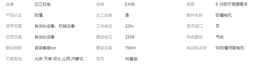 本网页所展示的有关【亿江大型机械粉尘气体低压交/直流90基座防爆伺服电机EX认证电机_直流电机_常州亿江机电科技有限公司】的信息/图片/参数等由全球零部件网的会员【常州亿江机电科技有限公司】提供,由全球零部件网会员【常州亿江机电科技有限公司】自行对信息/图片/参数等的真实性、准确性和合法性负责,本平台(本网站)仅提供展示服务,请谨慎交易,因交易而产生的法律关系及法律纠纷由您自行协商解决,本平台(本网站)对此不承担任何责任。您在本网页可以浏览【亿江大型机械粉尘气体低压交/直流90基座防爆伺服电机EX认证电机_直流电机_常州亿江机电科技有限公司】有关的信息/图片/价格等及提供【亿江大型机械粉尘气体低压交/直流90基座防爆伺服电机EX认证电机_直流电机_常州亿江机电科技有限公司】的商家公司简介、江南(中国)等信息。