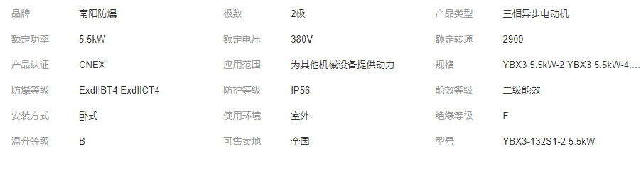 本网页所展示的有关【NANYANG YBX3-132S1-2 5.5kW防爆电机IP56防护等级_电机_南阳华达防爆机电设备有限公司】的信息/图片/参数等由全球零部件网的会员【南阳华达防爆机电设备有限公司】提供,由全球零部件网会员【南阳华达防爆机电设备有限公司】自行对信息/图片/参数等的真实性、准确性和合法性负责,本平台(本网站)仅提供展示服务,请谨慎交易,因交易而产生的法律关系及法律纠纷由您自行协商解决,本平台(本网站)对此不承担任何责任。您在本网页可以浏览【NANYANG YBX3-132S1-2 5.5kW防爆电机IP56防护等级_电机_南阳华达防爆机电设备有限公司】有关的信息/图片/价格等及提供【NANYANG YBX3-132S1-2 5.5kW防爆电机IP56防护等级_电机_南阳华达防爆机电设备有限公司】的商家公司简介、江南(中国)等信息。