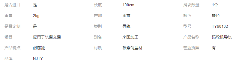 本网页所展示的有关【TY90102 码垛机导轨 碳素钢型材 耐腐蚀 应用于轨道交通 NJTY 来图加工_导轨_南京天亚机械刀片有限公司】的信息/图片/参数等由全球零部件网的会员【南京天亚机械刀片有限公司】提供,由全球零部件网会员【南京天亚机械刀片有限公司】自行对信息/图片/参数等的真实性、准确性和合法性负责,本平台(本网站)仅提供展示服务,请谨慎交易,因交易而产生的法律关系及法律纠纷由您自行协商解决,本平台(本网站)对此不承担任何责任。您在本网页可以浏览【TY90102 码垛机导轨 碳素钢型材 耐腐蚀 应用于轨道交通 NJTY 来图加工_导轨_南京天亚机械刀片有限公司】有关的信息/图片/价格等及提供【TY90102 码垛机导轨 碳素钢型材 耐腐蚀 应用于轨道交通 NJTY 来图加工_导轨_南京天亚机械刀片有限公司】的商家公司简介、江南(中国)等信息。