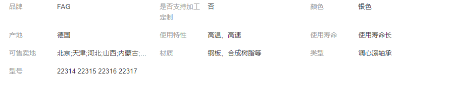 本网页所展示的有关【德国进口FAG调心滚子轴承 22314 22315 22316 22317 22318 22319 E1-XL_调心滚子轴承_济南益特精密轴承有限公司】的信息/图片/参数等由全球零部件网的会员【济南益特精密轴承有限公司】提供,由全球零部件网会员【济南益特精密轴承有限公司】自行对信息/图片/参数等的真实性、准确性和合法性负责,本平台(本网站)仅提供展示服务,请谨慎交易,因交易而产生的法律关系及法律纠纷由您自行协商解决,本平台(本网站)对此不承担任何责任。您在本网页可以浏览【德国进口FAG调心滚子轴承 22314 22315 22316 22317 22318 22319 E1-XL_调心滚子轴承_济南益特精密轴承有限公司】有关的信息/图片/价格等及提供【德国进口FAG调心滚子轴承 22314 22315 22316 22317 22318 22319 E1-XL_调心滚子轴承_济南益特精密轴承有限公司】的商家公司简介、江南(中国)等信息。