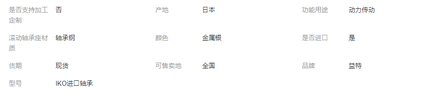 本网页所展示的有关【IKO进口轴承 品种齐全 仓库中心直发 高效静音节能_轴承_济南益特精密轴承有限公司】的信息/图片/参数等由全球零部件网的会员【济南益特精密轴承有限公司】提供,由全球零部件网会员【济南益特精密轴承有限公司】自行对信息/图片/参数等的真实性、准确性和合法性负责,本平台(本网站)仅提供展示服务,请谨慎交易,因交易而产生的法律关系及法律纠纷由您自行协商解决,本平台(本网站)对此不承担任何责任。您在本网页可以浏览【IKO进口轴承 品种齐全 仓库中心直发 高效静音节能_轴承_济南益特精密轴承有限公司】有关的信息/图片/价格等及提供【IKO进口轴承 品种齐全 仓库中心直发 高效静音节能_轴承_济南益特精密轴承有限公司】的商家公司简介、江南(中国)等信息。