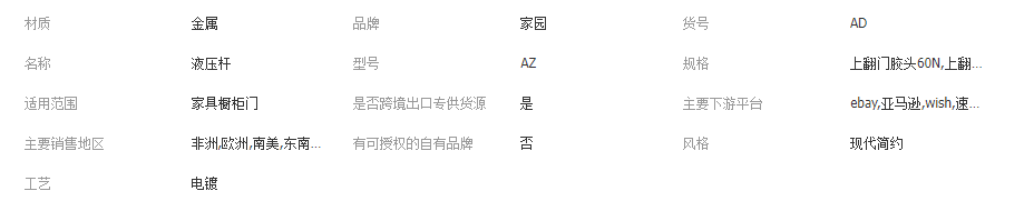 产品品名:橱柜胶头上翻支撑  规格:常规100N(其他力度定制)  颜色:银白色 包装:100支/件