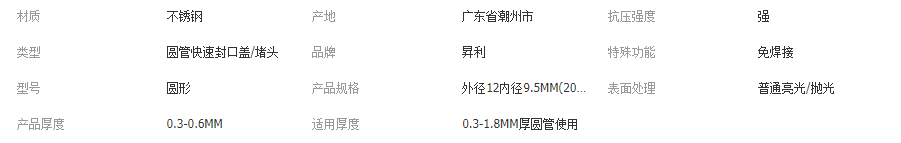 本网页所展示的有关【不锈钢圆管堵头快速封口盖免焊接封头管盖内塞堵帽装饰盖孔塞盖子_五金配件_潮州市潮安区彩塘镇昇利五金制品厂】的信息/图片/参数等由全球零部件网的会员【潮州市潮安区彩塘镇昇利五金制品厂】提供,由全球零部件网会员【潮州市潮安区彩塘镇昇利五金制品厂】自行对信息/图片/参数等的真实性、准确性和合法性负责,本平台(本网站)仅提供展示服务,请谨慎交易,因交易而产生的法律关系及法律纠纷由您自行协商解决,本平台(本网站)对此不承担任何责任。您在本网页可以浏览【不锈钢圆管堵头快速封口盖免焊接封头管盖内塞堵帽装饰盖孔塞盖子_五金配件_潮州市潮安区彩塘镇昇利五金制品厂】有关的信息/图片/价格等及提供【不锈钢圆管堵头快速封口盖免焊接封头管盖内塞堵帽装饰盖孔塞盖子_五金配件_潮州市潮安区彩塘镇昇利五金制品厂】的商家公司简介、江南(中国)等信息。