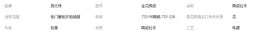 本网页所展示的有关【陶瓷拉手柜门欧式复古美式橱柜抽屉橱柜门拉手柜子单孔衣柜门把手_五金配件_温州市奥比特五金装饰有限公司】的信息/图片/参数等由全球零部件网的会员【温州市奥比特五金装饰有限公司】提供,由全球零部件网会员【温州市奥比特五金装饰有限公司】自行对信息/图片/参数等的真实性、准确性和合法性负责,本平台(本网站)仅提供展示服务,请谨慎交易,因交易而产生的法律关系及法律纠纷由您自行协商解决,本平台(本网站)对此不承担任何责任。您在本网页可以浏览【陶瓷拉手柜门欧式复古美式橱柜抽屉橱柜门拉手柜子单孔衣柜门把手_五金配件_温州市奥比特五金装饰有限公司】有关的信息/图片/价格等及提供【陶瓷拉手柜门欧式复古美式橱柜抽屉橱柜门拉手柜子单孔衣柜门把手_五金配件_温州市奥比特五金装饰有限公司】的商家公司简介、江南(中国)等信息。