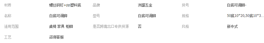 本网页所展示的有关【白底可调脚多规格可选橱柜脚可调节螺脚垫丝胶桌椅防滑家具脚垫子_家具五金配件_广州洲盛五金制品有限公司】的信息/图片/参数等由全球零部件网的会员【广州洲盛五金制品有限公司】提供,由全球零部件网会员【广州洲盛五金制品有限公司】自行对信息/图片/参数等的真实性、准确性和合法性负责,本平台(本网站)仅提供展示服务,请谨慎交易,因交易而产生的法律关系及法律纠纷由您自行协商解决,本平台(本网站)对此不承担任何责任。您在本网页可以浏览【白底可调脚多规格可选橱柜脚可调节螺脚垫丝胶桌椅防滑家具脚垫子_家具五金配件_广州洲盛五金制品有限公司】有关的信息/图片/价格等及提供【白底可调脚多规格可选橱柜脚可调节螺脚垫丝胶桌椅防滑家具脚垫子_家具五金配件_广州洲盛五金制品有限公司】的商家公司简介、江南(中国)等信息。