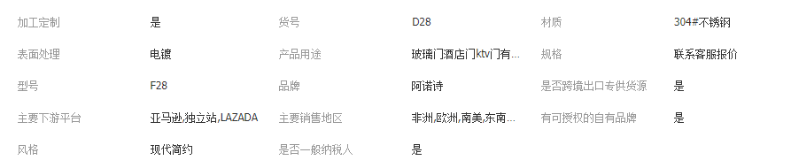 本网页所展示的有关【定制方管双弯不锈钢玻璃门大门把手拉丝玫瑰黑钛有框门KTV长拉手_五金配件_阿诺诗(广东)精密金属科技有限公司】的信息/图片/参数等由全球零部件网的会员【阿诺诗(广东)精密金属科技有限公司】提供,由全球零部件网会员【阿诺诗(广东)精密金属科技有限公司】自行对信息/图片/参数等的真实性、准确性和合法性负责,本平台(本网站)仅提供展示服务,请谨慎交易,因交易而产生的法律关系及法律纠纷由您自行协商解决,本平台(本网站)对此不承担任何责任。您在本网页可以浏览【定制方管双弯不锈钢玻璃门大门把手拉丝玫瑰黑钛有框门KTV长拉手_五金配件_阿诺诗(广东)精密金属科技有限公司】有关的信息/图片/价格等及提供【定制方管双弯不锈钢玻璃门大门把手拉丝玫瑰黑钛有框门KTV长拉手_五金配件_阿诺诗(广东)精密金属科技有限公司】的商家公司简介、江南(中国)等信息。