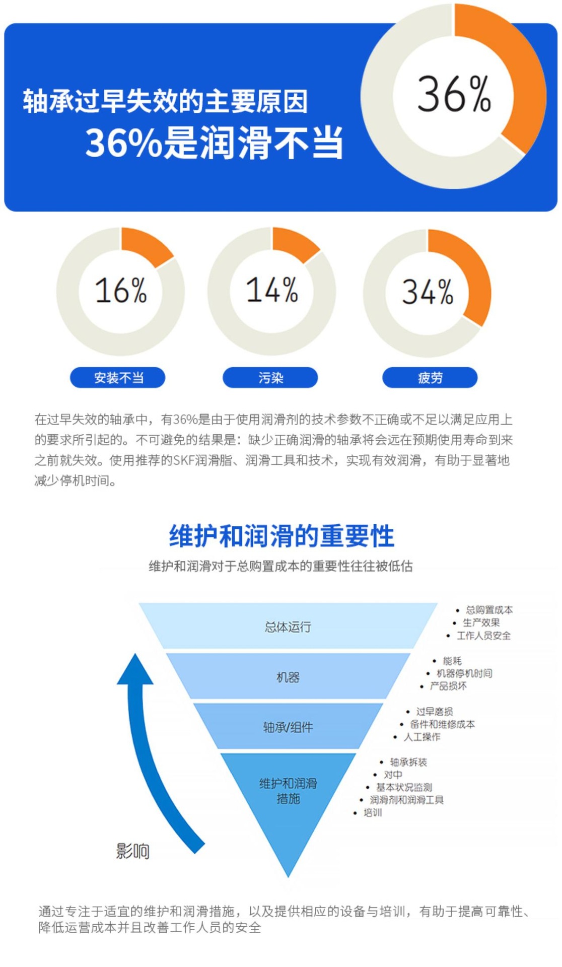- 可靠: 经测试证明SKF所有润滑脂均可用