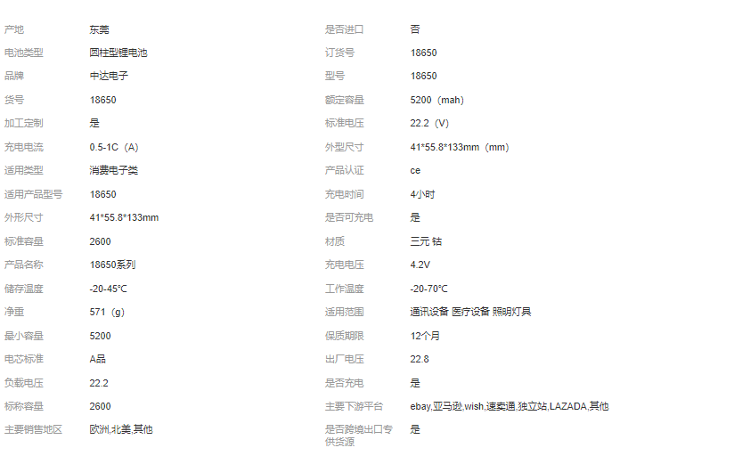 本网页所展示的有关【定制18650锂电池组22.2V吸尘器太阳能路灯医疗设备圆柱形锂电池_电池/蓄电池_东莞市中达电子科技有限公司】的信息/图片/参数等由全球零部件网的会员【东莞市中达电子科技有限公司】提供,由全球零部件网会员【东莞市中达电子科技有限公司】自行对信息/图片/参数等的真实性、准确性和合法性负责,本平台(本网站)仅提供展示服务,请谨慎交易,因交易而产生的法律关系及法律纠纷由您自行协商解决,本平台(本网站)对此不承担任何责任。您在本网页可以浏览【定制18650锂电池组22.2V吸尘器太阳能路灯医疗设备圆柱形锂电池_电池/蓄电池_东莞市中达电子科技有限公司】有关的信息/图片/价格等及提供【定制18650锂电池组22.2V吸尘器太阳能路灯医疗设备圆柱形锂电池_电池/蓄电池_东莞市中达电子科技有限公司】的商家公司简介、江南(中国)等信息。
