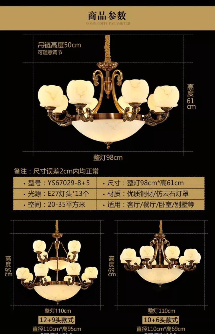 本网页所展示的有关【美式全铜云石客厅大吊灯大厅餐厅卧室简约大气奢华别墅复式楼灯具_灯泡/灯类_中山市光之梦灯饰有限公司】的信息/图片/参数等由全球零部件网的会员【中山市光之梦灯饰有限公司】提供,由全球零部件网会员【中山市光之梦灯饰有限公司】自行对信息/图片/参数等的真实性、准确性和合法性负责,本平台(本网站)仅提供展示服务,请谨慎交易,因交易而产生的法律关系及法律纠纷由您自行协商解决,本平台(本网站)对此不承担任何责任。您在本网页可以浏览【美式全铜云石客厅大吊灯大厅餐厅卧室简约大气奢华别墅复式楼灯具_灯泡/灯类_中山市光之梦灯饰有限公司】有关的信息/图片/价格等及提供【美式全铜云石客厅大吊灯大厅餐厅卧室简约大气奢华别墅复式楼灯具_灯泡/灯类_中山市光之梦灯饰有限公司】的商家公司简介、江南(中国)等信息。