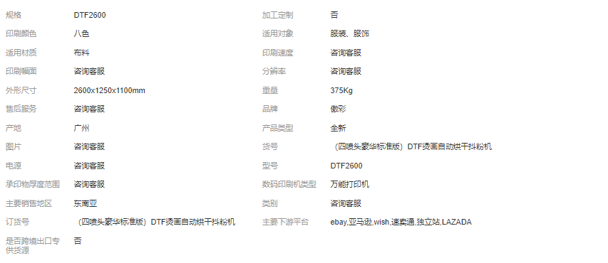本网页所展示的有关【厂家四喷头dtf数码抖粉机白墨烫画膜豪华版自动抖粉烘干机撒粉机_印刷器材_广州市傲彩数码科技有限公司】的信息/图片/参数等由全球零部件网的会员【广州市傲彩数码科技有限公司】提供,由全球零部件网会员【广州市傲彩数码科技有限公司】自行对信息/图片/参数等的真实性、准确性和合法性负责,本平台(本网站)仅提供展示服务,请谨慎交易,因交易而产生的法律关系及法律纠纷由您自行协商解决,本平台(本网站)对此不承担任何责任。您在本网页可以浏览【厂家四喷头dtf数码抖粉机白墨烫画膜豪华版自动抖粉烘干机撒粉机_印刷器材_广州市傲彩数码科技有限公司】有关的信息/图片/价格等及提供【厂家四喷头dtf数码抖粉机白墨烫画膜豪华版自动抖粉烘干机撒粉机_印刷器材_广州市傲彩数码科技有限公司】的商家公司简介、江南(中国)等信息。