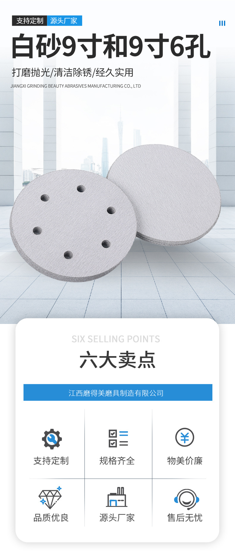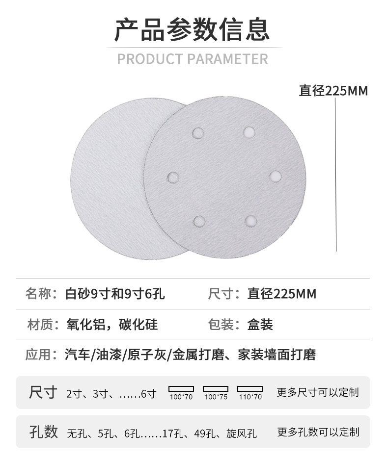 本网页所展示的有关【白砂9寸 9寸6孔圆形背绒白砂纸干磨自粘式砂盘拉绒抛光机打磨批发_工程配件_江西磨得美磨具制造有限公司】的信息/图片/参数等由全球零部件网的会员【江西磨得美磨具制造有限公司】提供,由全球零部件网会员【江西磨得美磨具制造有限公司】自行对信息/图片/参数等的真实性、准确性和合法性负责,本平台(本网站)仅提供展示服务,请谨慎交易,因交易而产生的法律关系及法律纠纷由您自行协商解决,本平台(本网站)对此不承担任何责任。您在本网页可以浏览【白砂9寸 9寸6孔圆形背绒白砂纸干磨自粘式砂盘拉绒抛光机打磨批发_工程配件_江西磨得美磨具制造有限公司】有关的信息/图片/价格等及提供【白砂9寸 9寸6孔圆形背绒白砂纸干磨自粘式砂盘拉绒抛光机打磨批发_工程配件_江西磨得美磨具制造有限公司】的商家公司简介、江南(中国)等信息。