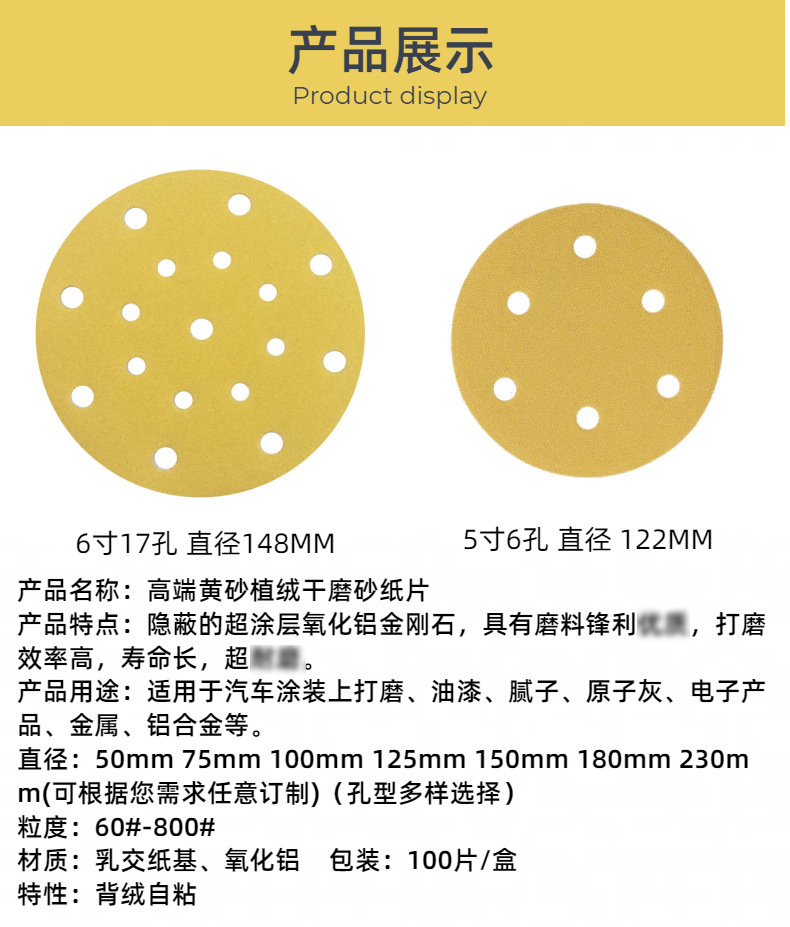 本网页所展示的有关【6寸17孔5寸6孔背绒砂纸150mm汽车油漆腻打磨圆盘砂纸干磨黄砂砂纸_工程配件_江西磨得美磨具制造有限公司】的信息/图片/参数等由全球零部件网的会员【江西磨得美磨具制造有限公司】提供,由全球零部件网会员【江西磨得美磨具制造有限公司】自行对信息/图片/参数等的真实性、准确性和合法性负责,本平台(本网站)仅提供展示服务,请谨慎交易,因交易而产生的法律关系及法律纠纷由您自行协商解决,本平台(本网站)对此不承担任何责任。您在本网页可以浏览【6寸17孔5寸6孔背绒砂纸150mm汽车油漆腻打磨圆盘砂纸干磨黄砂砂纸_工程配件_江西磨得美磨具制造有限公司】有关的信息/图片/价格等及提供【6寸17孔5寸6孔背绒砂纸150mm汽车油漆腻打磨圆盘砂纸干磨黄砂砂纸_工程配件_江西磨得美磨具制造有限公司】的商家公司简介、江南(中国)等信息。