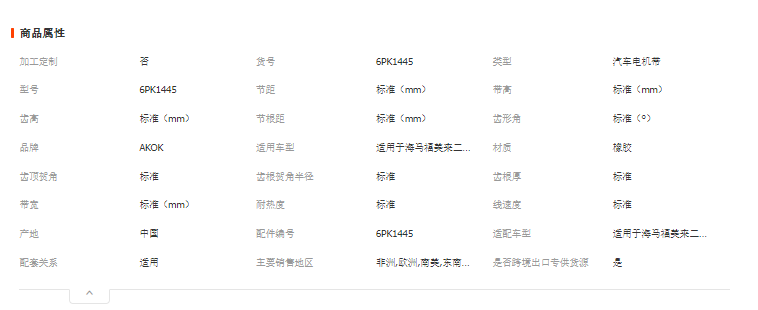 本网页所展示的有关【工厂直销汽车皮带6PK1445适用于海马福美来二代电机助力空调皮带_ HVAC汽车_广州爱备盛汽车零部件有限公司】的信息/图片/参数等由全球零部件网的会员【广州爱备盛汽车零部件有限公司】提供,由全球零部件网会员【广州爱备盛汽车零部件有限公司】自行对信息/图片/参数等的真实性、准确性和合法性负责,本平台(本网站)仅提供展示服务,请谨慎交易,因交易而产生的法律关系及法律纠纷由您自行协商解决,本平台(本网站)对此不承担任何责任。您在本网页可以浏览【工厂直销汽车皮带6PK1445适用于海马福美来二代电机助力空调皮带_ HVAC汽车_广州爱备盛汽车零部件有限公司】有关的信息/图片/价格等及提供【工厂直销汽车皮带6PK1445适用于海马福美来二代电机助力空调皮带_ HVAC汽车_广州爱备盛汽车零部件有限公司】的商家公司简介、江南(中国)等信息。
