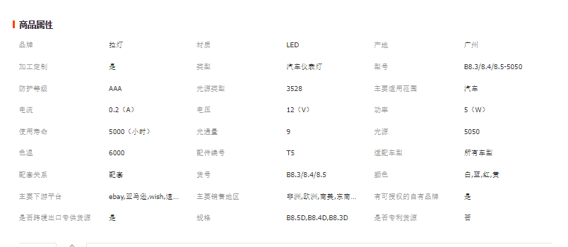 1.汽车仪表灯(T5 B8.5D)环保,省源,四千小时仅耗1度电
