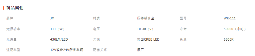 产品名称:111W 9"/9英寸 LED汽车工作灯越野车灯