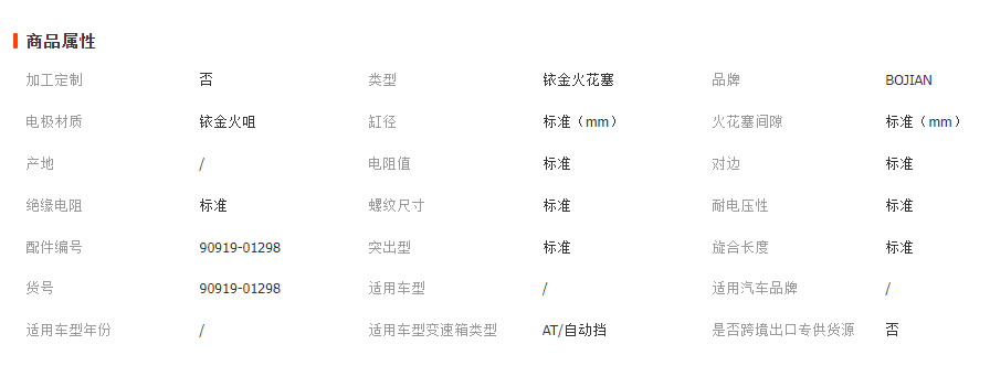 本网页所展示的有关【适用于丰田酷路泽 普瑞维亚凯美瑞汽车火花塞 90919-01298_火花塞_广州搏剑贸易有限公司】的信息/图片/参数等由全球零部件网的会员【广州搏剑贸易有限公司】提供,由全球零部件网会员【广州搏剑贸易有限公司】自行对信息/图片/参数等的真实性、准确性和合法性负责,本平台(本网站)仅提供展示服务,请谨慎交易,因交易而产生的法律关系及法律纠纷由您自行协商解决,本平台(本网站)对此不承担任何责任。您在本网页可以浏览【适用于丰田酷路泽 普瑞维亚凯美瑞汽车火花塞 90919-01298_火花塞_广州搏剑贸易有限公司】有关的信息/图片/价格等及提供【适用于丰田酷路泽 普瑞维亚凯美瑞汽车火花塞 90919-01298_火花塞_广州搏剑贸易有限公司】的商家公司简介、江南(中国)等信息。