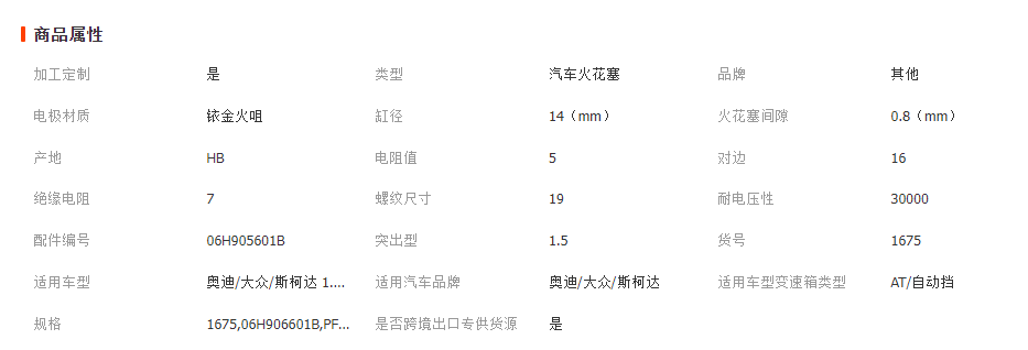 主营: 电源系统配件 火花塞