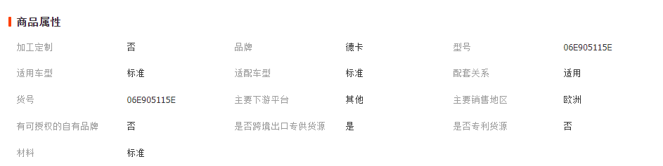 本网页所展示的有关【适用保时捷卡宴06E905115E点火线圈 高压包_点火线圈_广州德卡汽车零部件有限公司】的信息/图片/参数等由全球零部件网的会员【广州德卡汽车零部件有限公司】提供,由全球零部件网会员【广州德卡汽车零部件有限公司】自行对信息/图片/参数等的真实性、准确性和合法性负责,本平台(本网站)仅提供展示服务,请谨慎交易,因交易而产生的法律关系及法律纠纷由您自行协商解决,本平台(本网站)对此不承担任何责任。您在本网页可以浏览【适用保时捷卡宴06E905115E点火线圈 高压包_点火线圈_广州德卡汽车零部件有限公司】有关的信息/图片/价格等及提供【适用保时捷卡宴06E905115E点火线圈 高压包_点火线圈_广州德卡汽车零部件有限公司】的商家公司简介、江南(中国)等信息。