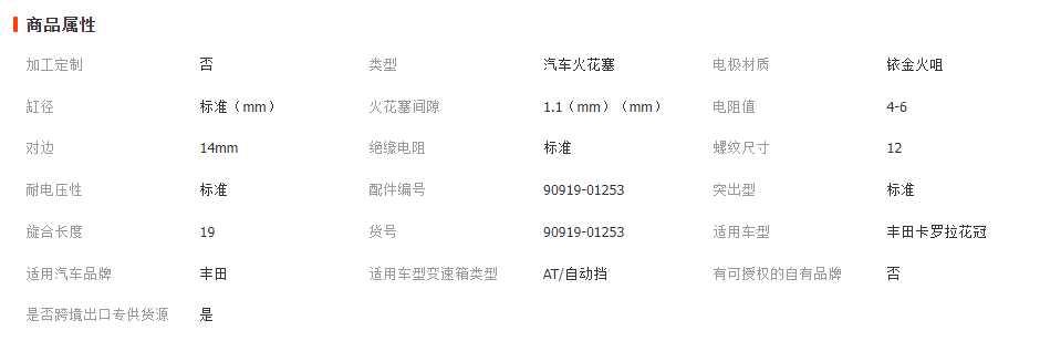 本网页所展示的有关【90919-01253 SC20HR11铱金火花塞 适用丰田卡罗拉花冠汽车配件_火花塞_广州世跃中贸易有限公司】的信息/图片/参数等由全球零部件网的会员【广州世跃中贸易有限公司】提供,由全球零部件网会员【广州世跃中贸易有限公司】自行对信息/图片/参数等的真实性、准确性和合法性负责,本平台(本网站)仅提供展示服务,请谨慎交易,因交易而产生的法律关系及法律纠纷由您自行协商解决,本平台(本网站)对此不承担任何责任。您在本网页可以浏览【90919-01253 SC20HR11铱金火花塞 适用丰田卡罗拉花冠汽车配件_火花塞_广州世跃中贸易有限公司】有关的信息/图片/价格等及提供【90919-01253 SC20HR11铱金火花塞 适用丰田卡罗拉花冠汽车配件_火花塞_广州世跃中贸易有限公司】的商家公司简介、江南(中国)等信息。