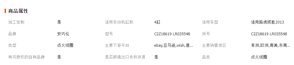 本网页所展示的有关【适用路虎揽胜2013年 点火线圈 C2Z18619 LR035548_点火线圈_广东安巧伦汽车配件有限公司】的信息/图片/参数等由全球零部件网的会员【广东安巧伦汽车配件有限公司】提供,由全球零部件网会员【广东安巧伦汽车配件有限公司】自行对信息/图片/参数等的真实性、准确性和合法性负责,本平台(本网站)仅提供展示服务,请谨慎交易,因交易而产生的法律关系及法律纠纷由您自行协商解决,本平台(本网站)对此不承担任何责任。您在本网页可以浏览【适用路虎揽胜2013年 点火线圈 C2Z18619 LR035548_点火线圈_广东安巧伦汽车配件有限公司】有关的信息/图片/价格等及提供【适用路虎揽胜2013年 点火线圈 C2Z18619 LR035548_点火线圈_广东安巧伦汽车配件有限公司】的商家公司简介、江南(中国)等信息。
