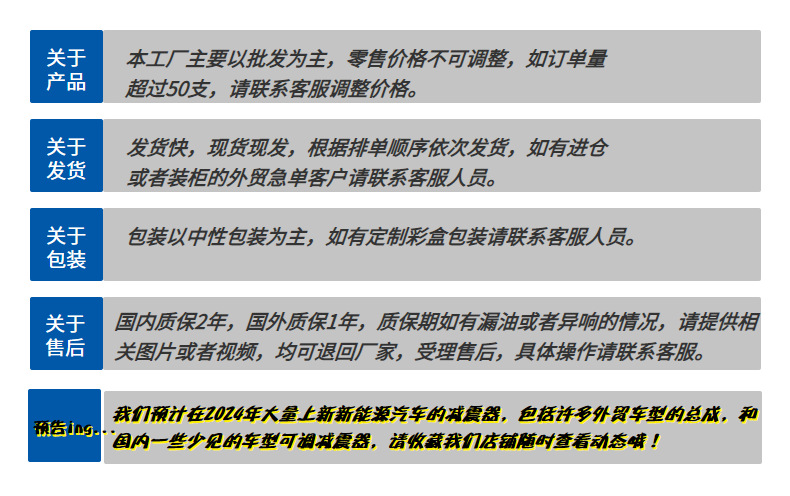 本网页所展示的有关【适用于凯迪拉克 凯雷德 前电感汽车减震器总成84176631 84061228_减震器_四川旌西汽车零部件有限公司】的信息/图片/参数等由全球零部件网的会员【四川旌西汽车零部件有限公司】提供,由全球零部件网会员【四川旌西汽车零部件有限公司】自行对信息/图片/参数等的真实性、准确性和合法性负责,本平台(本网站)仅提供展示服务,请谨慎交易,因交易而产生的法律关系及法律纠纷由您自行协商解决,本平台(本网站)对此不承担任何责任。您在本网页可以浏览【适用于凯迪拉克 凯雷德 前电感汽车减震器总成84176631 84061228_减震器_四川旌西汽车零部件有限公司】有关的信息/图片/价格等及提供【适用于凯迪拉克 凯雷德 前电感汽车减震器总成84176631 84061228_减震器_四川旌西汽车零部件有限公司】的商家公司简介、江南(中国)等信息。