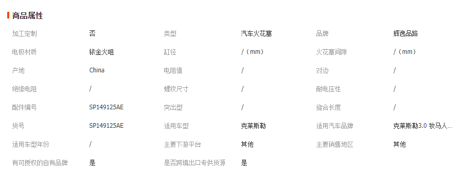 本网页所展示的有关【适用克莱斯勒3.0 牧马人战马火花塞大捷龙吉普道奇公羊SP149125AE_火花塞_广州罗禾汽车配件有限公司】的信息/图片/参数等由全球零部件网的会员【广州罗禾汽车配件有限公司】提供,由全球零部件网会员【广州罗禾汽车配件有限公司】自行对信息/图片/参数等的真实性、准确性和合法性负责,本平台(本网站)仅提供展示服务,请谨慎交易,因交易而产生的法律关系及法律纠纷由您自行协商解决,本平台(本网站)对此不承担任何责任。您在本网页可以浏览【适用克莱斯勒3.0 牧马人战马火花塞大捷龙吉普道奇公羊SP149125AE_火花塞_广州罗禾汽车配件有限公司】有关的信息/图片/价格等及提供【适用克莱斯勒3.0 牧马人战马火花塞大捷龙吉普道奇公羊SP149125AE_火花塞_广州罗禾汽车配件有限公司】的商家公司简介、江南(中国)等信息。
