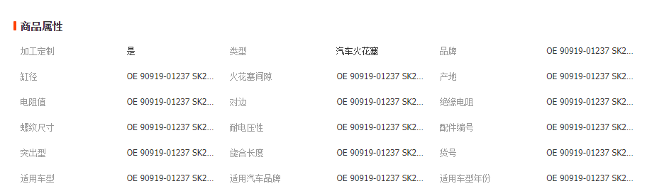 您所在的位置:全球零部件网>产品供应> HVAC汽车>发动机系统>火花塞>OE 90919-01237 SK20R11 火花塞 适用于丰田 9091901237