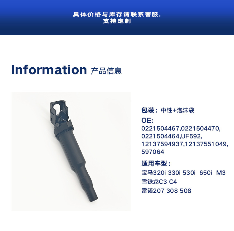 本网页所展示的有关【点火线圈597064,12137559842适用于宝马标志207308雪铁龙C3C4_点火线圈_瑞安市科众汽车零部件厂】的信息/图片/参数等由全球零部件网的会员【瑞安市科众汽车零部件厂】提供,由全球零部件网会员【瑞安市科众汽车零部件厂】自行对信息/图片/参数等的真实性、准确性和合法性负责,本平台(本网站)仅提供展示服务,请谨慎交易,因交易而产生的法律关系及法律纠纷由您自行协商解决,本平台(本网站)对此不承担任何责任。您在本网页可以浏览【点火线圈597064,12137559842适用于宝马标志207308雪铁龙C3C4_点火线圈_瑞安市科众汽车零部件厂】有关的信息/图片/价格等及提供【点火线圈597064,12137559842适用于宝马标志207308雪铁龙C3C4_点火线圈_瑞安市科众汽车零部件厂】的商家公司简介、江南(中国)等信息。