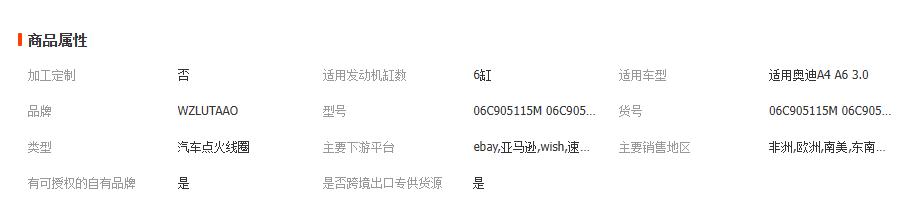 本网页所展示的有关【06C905115M 06C905115B 06C905115K 适用奥迪A4 A6 3.0 点火线圈_点火线圈_温州陆陶汽车配件有限公司】的信息/图片/参数等由全球零部件网的会员【温州陆陶汽车配件有限公司】提供,由全球零部件网会员【温州陆陶汽车配件有限公司】自行对信息/图片/参数等的真实性、准确性和合法性负责,本平台(本网站)仅提供展示服务,请谨慎交易,因交易而产生的法律关系及法律纠纷由您自行协商解决,本平台(本网站)对此不承担任何责任。您在本网页可以浏览【06C905115M 06C905115B 06C905115K 适用奥迪A4 A6 3.0 点火线圈_点火线圈_温州陆陶汽车配件有限公司】有关的信息/图片/价格等及提供【06C905115M 06C905115B 06C905115K 适用奥迪A4 A6 3.0 点火线圈_点火线圈_温州陆陶汽车配件有限公司】的商家公司简介、江南(中国)等信息。
