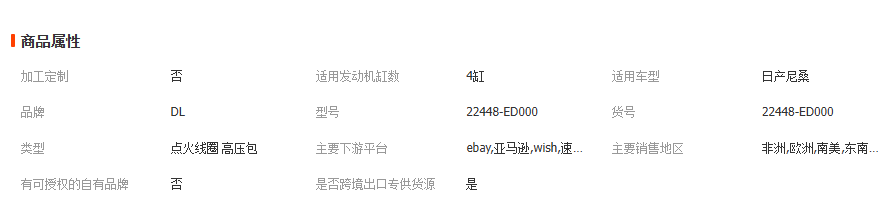 本网页所展示的有关【适用于日产阳光点火线圈22448-ED000 22448-JA00C 22448-JA00A_点火线圈_广州鼎隆汽配商行】的信息/图片/参数等由全球零部件网的会员【广州鼎隆汽配商行】提供,由全球零部件网会员【广州鼎隆汽配商行】自行对信息/图片/参数等的真实性、准确性和合法性负责,本平台(本网站)仅提供展示服务,请谨慎交易,因交易而产生的法律关系及法律纠纷由您自行协商解决,本平台(本网站)对此不承担任何责任。您在本网页可以浏览【适用于日产阳光点火线圈22448-ED000 22448-JA00C 22448-JA00A_点火线圈_广州鼎隆汽配商行】有关的信息/图片/价格等及提供【适用于日产阳光点火线圈22448-ED000 22448-JA00C 22448-JA00A_点火线圈_广州鼎隆汽配商行】的商家公司简介、江南(中国)等信息。