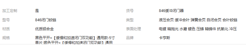 本网页所展示的有关【定制隐形门合页自动关门闭门器缓冲隐形液压阻尼弹簧合页自闭合叶_合页_肇庆市卡亨斯精密五金有限公司】的信息/图片/参数等由全球零部件网的会员【肇庆市卡亨斯精密五金有限公司】提供,由全球零部件网会员【肇庆市卡亨斯精密五金有限公司】自行对信息/图片/参数等的真实性、准确性和合法性负责,本平台(本网站)仅提供展示服务,请谨慎交易,因交易而产生的法律关系及法律纠纷由您自行协商解决,本平台(本网站)对此不承担任何责任。您在本网页可以浏览【定制隐形门合页自动关门闭门器缓冲隐形液压阻尼弹簧合页自闭合叶_合页_肇庆市卡亨斯精密五金有限公司】有关的信息/图片/价格等及提供【定制隐形门合页自动关门闭门器缓冲隐形液压阻尼弹簧合页自闭合叶_合页_肇庆市卡亨斯精密五金有限公司】的商家公司简介、江南(中国)等信息。