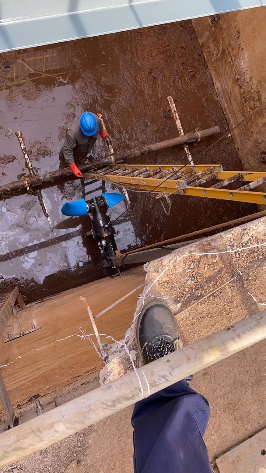 潜水推流器电机是潜水式,水平安装的,全铜线圈电机,齿轮箱减速机。推流器可上下升降,方便的移动,且可以方便地卸下进行检查或服务,而无需人员进入池子或井中。