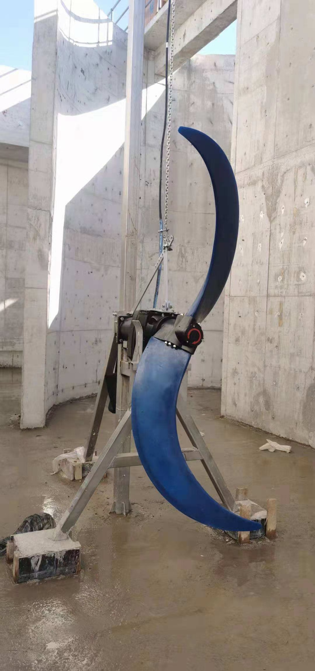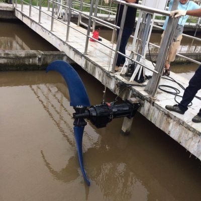 在试运转正常后,切断电源。将搅拌机沿方型导杆放入水下,并确保低速推流器安装到位。接通电源进行运转,并检查是否正常。