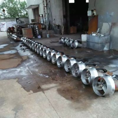潜水搅拌机采用斜齿轮减速机结构,结构紧凑,体积小,重量轻,叶轮通过CFD软件优化设计,水力性能好。