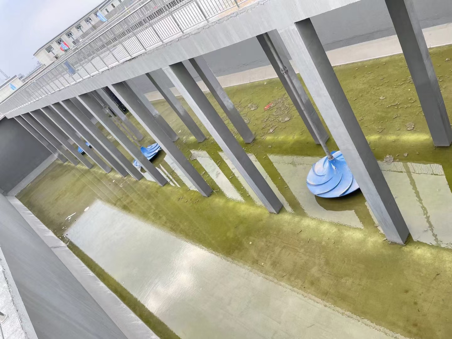 在有水的情况下先将轴和叶轮连接好放入水中,然后将轴与减速机连接。