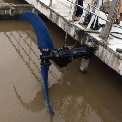 杜安环保QJB潜水推流器整体设计,封闭式连接,采用潜水型电机。潜水推流器所有的组件包括电机和齿轮箱都能够在水下连续运转。推流器螺旋桨由潜水电机通过减速齿轮驱动。转动头部呈流线锥型,其结构紧凑。