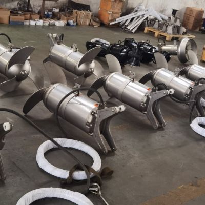 潜水搅拌机桨叶材质的选择应重点从刚性和耐磨寿命方面考虑。螺旋桨和轮毂整体在工厂内经G6.3级动平衡检验合格。