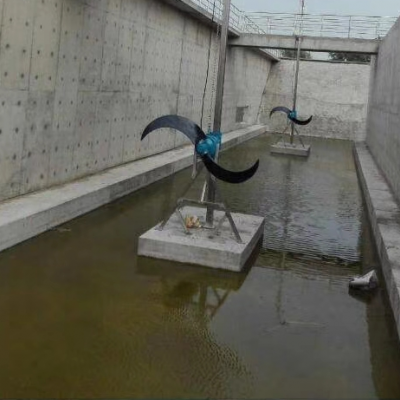 根据污水处理厂不同的工艺要求,搅拌机进速应保证在0.15~0.3m/s之间,如果低于0.15m/s的进速则达不到推进搅拌效果,超过0.3m/s的进速则会影响工艺效果且造成浪费。