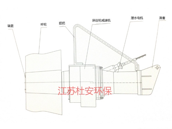 MBR专用推流器主要由潜水电机、减速机、螺旋推进叶轮、密封、手摇卷扬机构、安装系统和电气控制装置等配套组成。