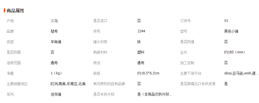 本网页所展示的有关【迷你包塑纤维柄羊角锤家用安全小锤子多功能起钉锤五金工具批发_锤子类_义乌市楚秀贸易有限公司】的信息/图片/参数等由全球零部件网的会员【义乌市楚秀贸易有限公司】提供,由全球零部件网会员【义乌市楚秀贸易有限公司】自行对信息/图片/参数等的真实性、准确性和合法性负责,本平台(本网站)仅提供展示服务,请谨慎交易,因交易而产生的法律关系及法律纠纷由您自行协商解决,本平台(本网站)对此不承担任何责任。您在本网页可以浏览【迷你包塑纤维柄羊角锤家用安全小锤子多功能起钉锤五金工具批发_锤子类_义乌市楚秀贸易有限公司】有关的信息/图片/价格等及提供【迷你包塑纤维柄羊角锤家用安全小锤子多功能起钉锤五金工具批发_锤子类_义乌市楚秀贸易有限公司】的商家公司简介、江南(中国)等信息。