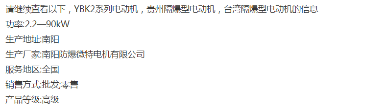 本网页所展示的有关【辽宁隔爆型电动机|优质的YBK2系列煤矿井下用隔爆型电动机低_其他配件_南阳防爆微特电机有限公司】的信息/图片/参数等由全球零部件网的会员【南阳防爆微特电机有限公司】提供,由全球零部件网会员【南阳防爆微特电机有限公司】自行对信息/图片/参数等的真实性、准确性和合法性负责,本平台(本网站)仅提供展示服务,请谨慎交易,因交易而产生的法律关系及法律纠纷由您自行协商解决,本平台(本网站)对此不承担任何责任。您在本网页可以浏览【辽宁隔爆型电动机|优质的YBK2系列煤矿井下用隔爆型电动机低_其他配件_南阳防爆微特电机有限公司】有关的信息/图片/价格等及提供【辽宁隔爆型电动机|优质的YBK2系列煤矿井下用隔爆型电动机低_其他配件_南阳防爆微特电机有限公司】的商家公司简介、江南(中国)等信息。